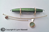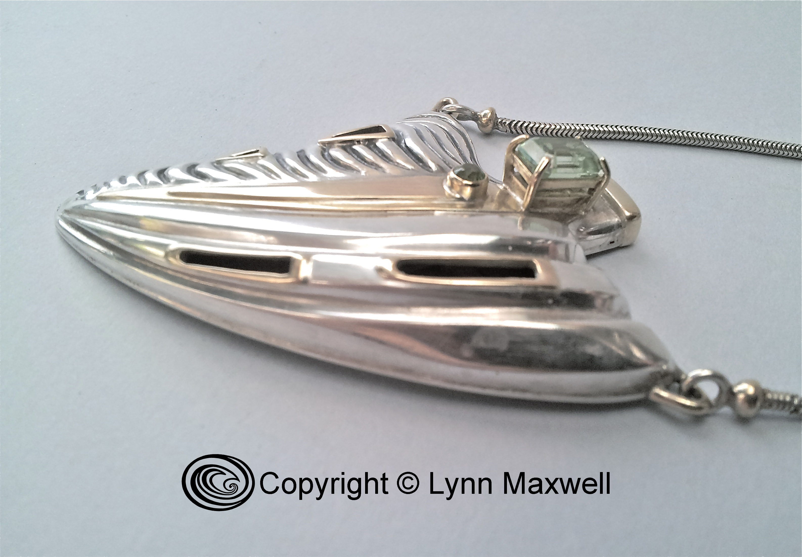 Pendant flute, repousse, silver, gold, peridot, tourmaline,