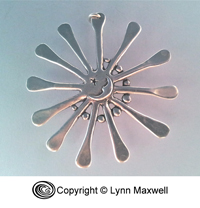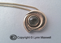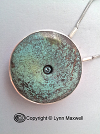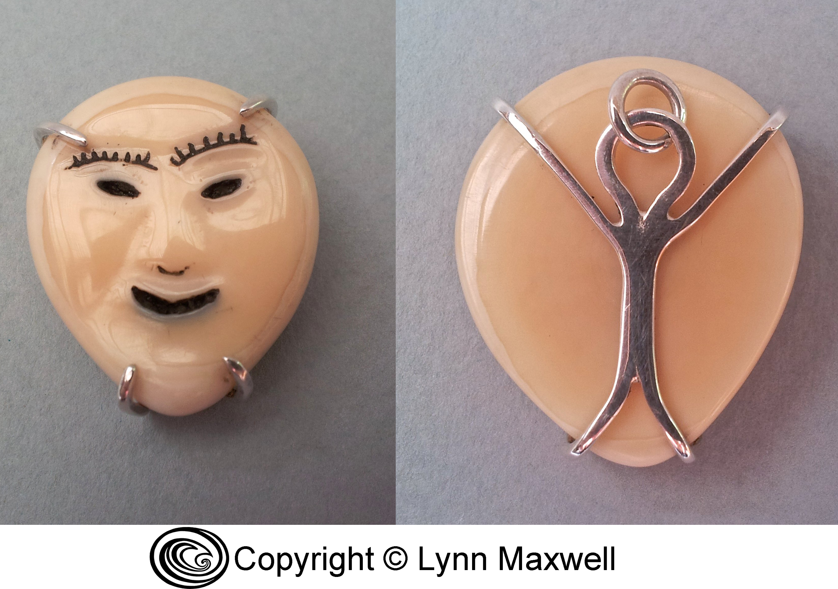 Pendant, cast silver, mother-of-pearl, 0.75" |