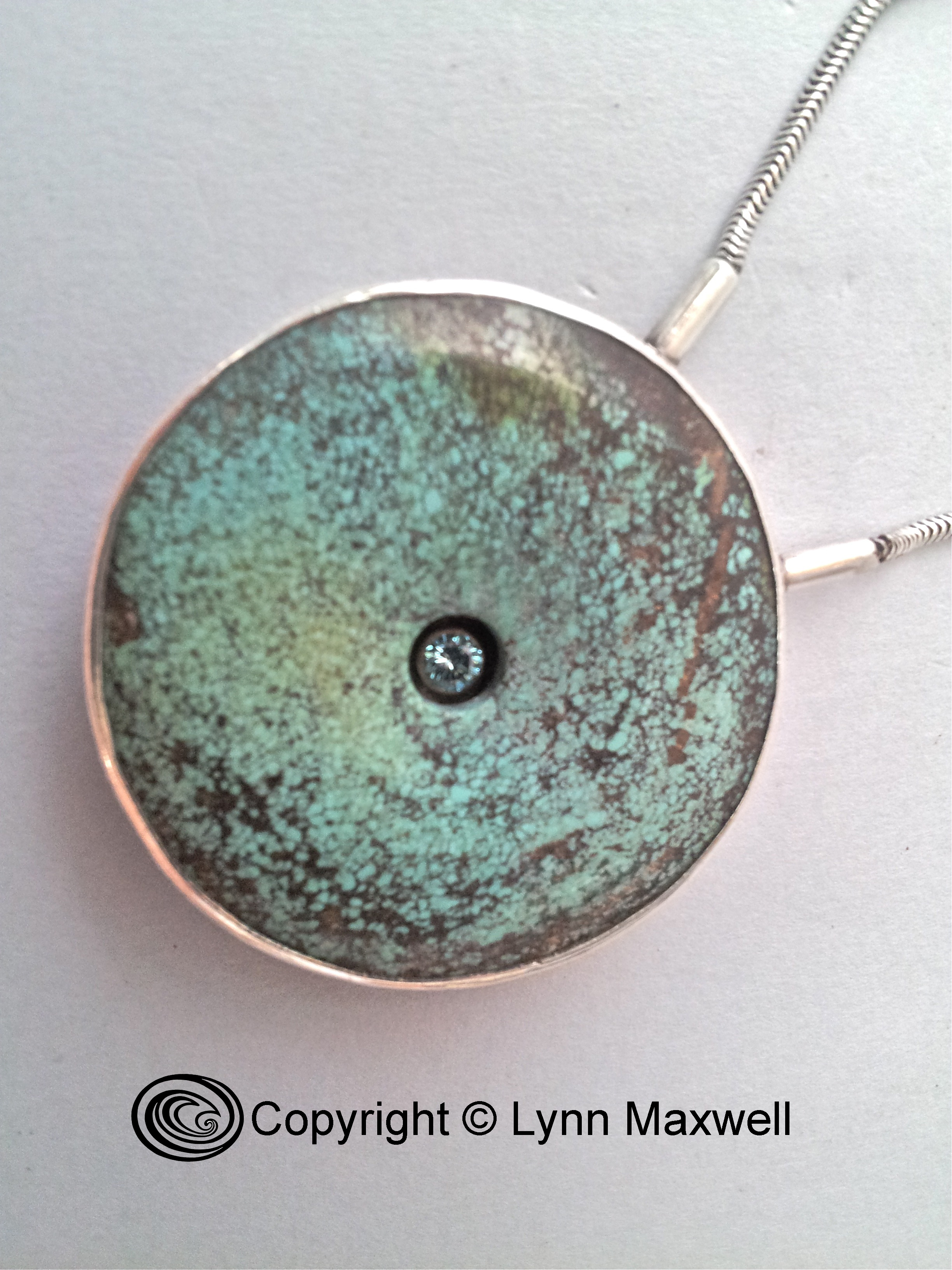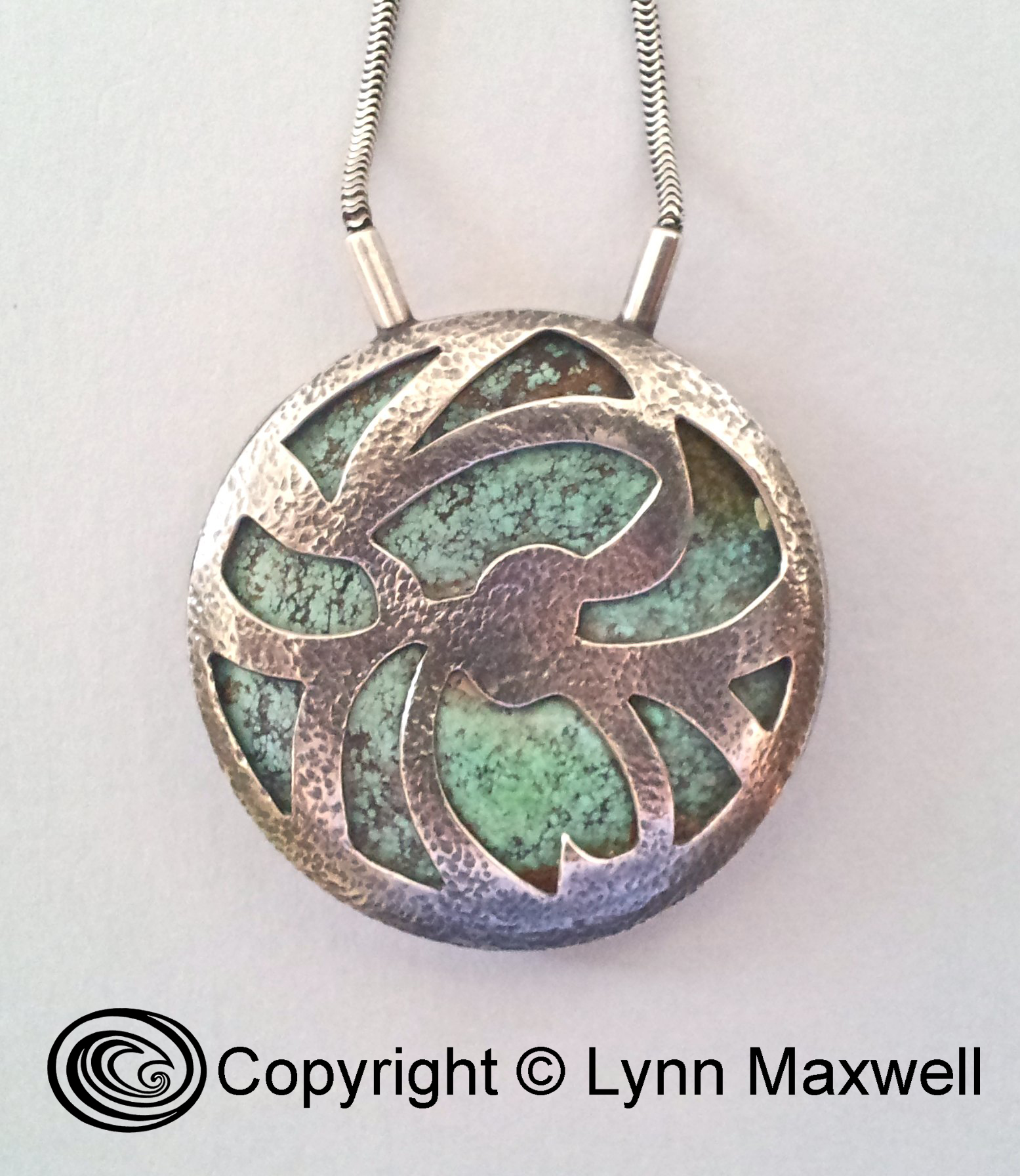 Pendant, fabricated silver, turquoise, diamond, 2" |